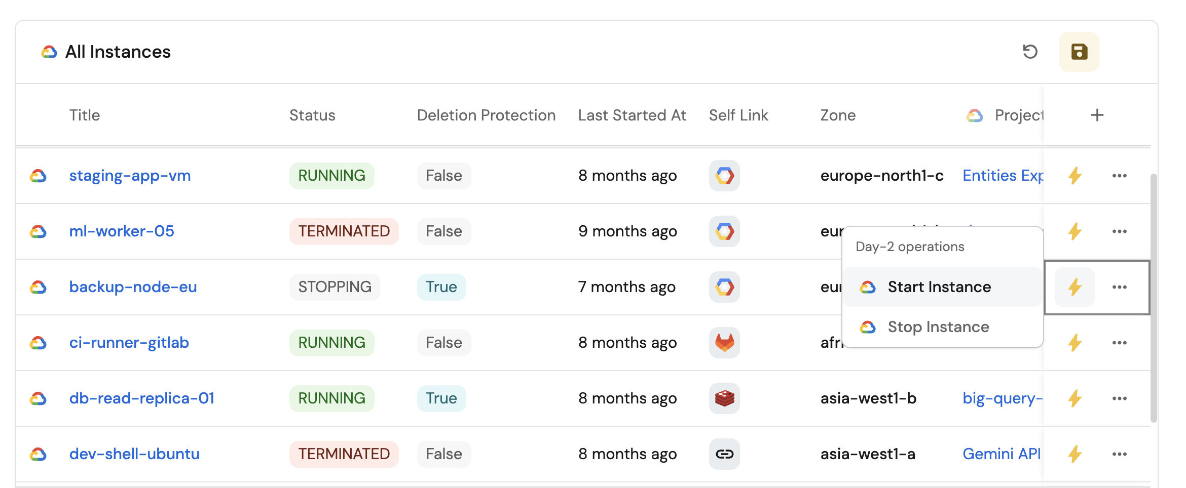 2. Title: Instances without deletion protection (add the GoogleCloud icon).