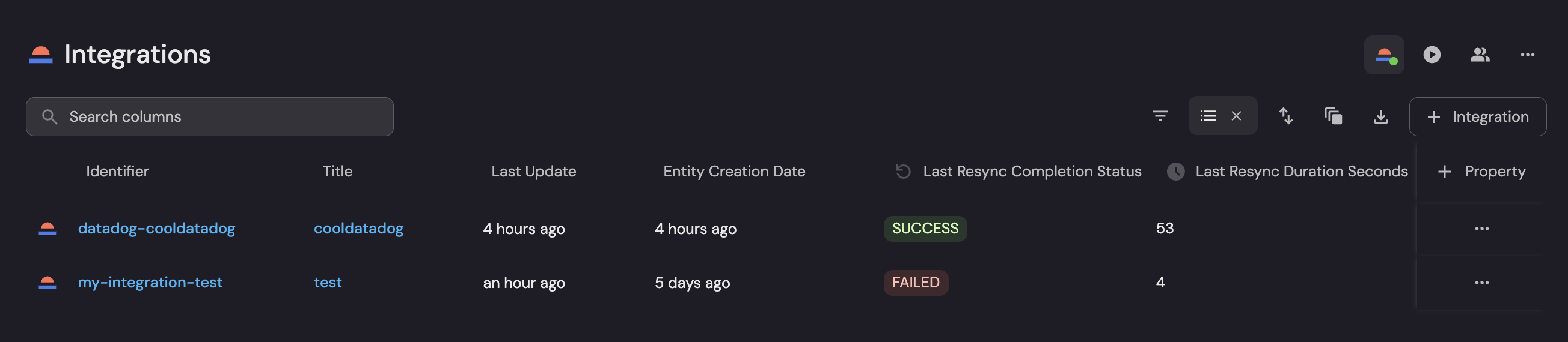 The Integration blueprint tracks overall resync status, duration, and timing.
