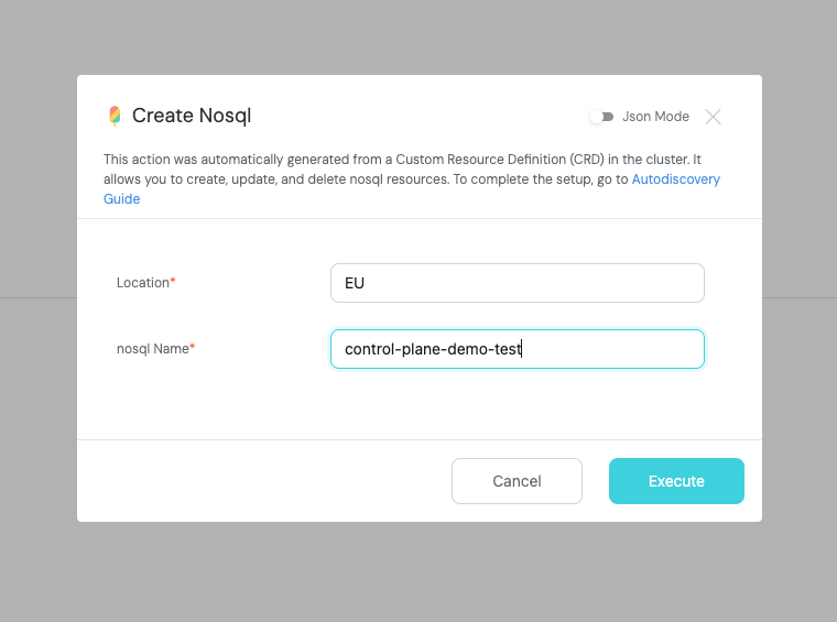 You might have noticed that some fields are not visible in the UI but are present in the CRD. By default, Port will not show all the fields of the CRD in the UI, it will only show the required ones. You can change this by editing the action JSON, and removing the visible: false from the fields that you want to show in the UI.