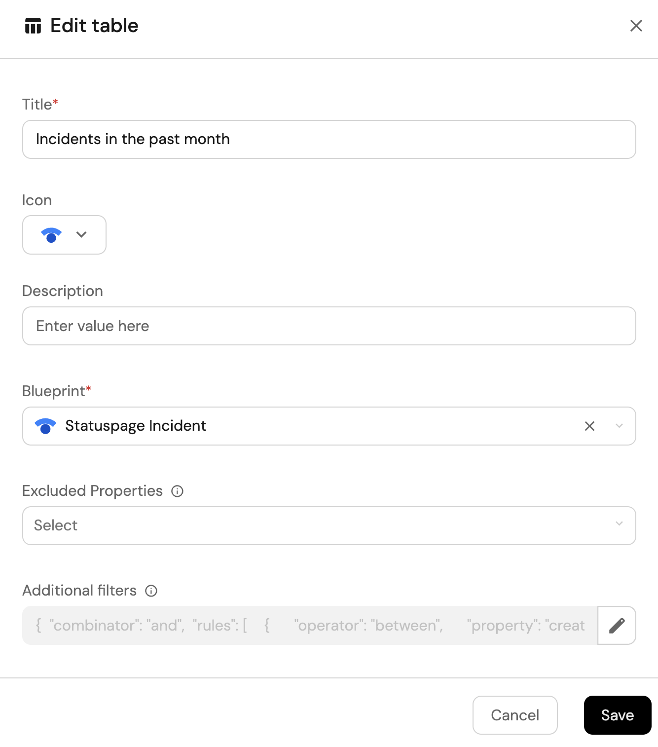 Choose the Statuspage Incident blueprint.