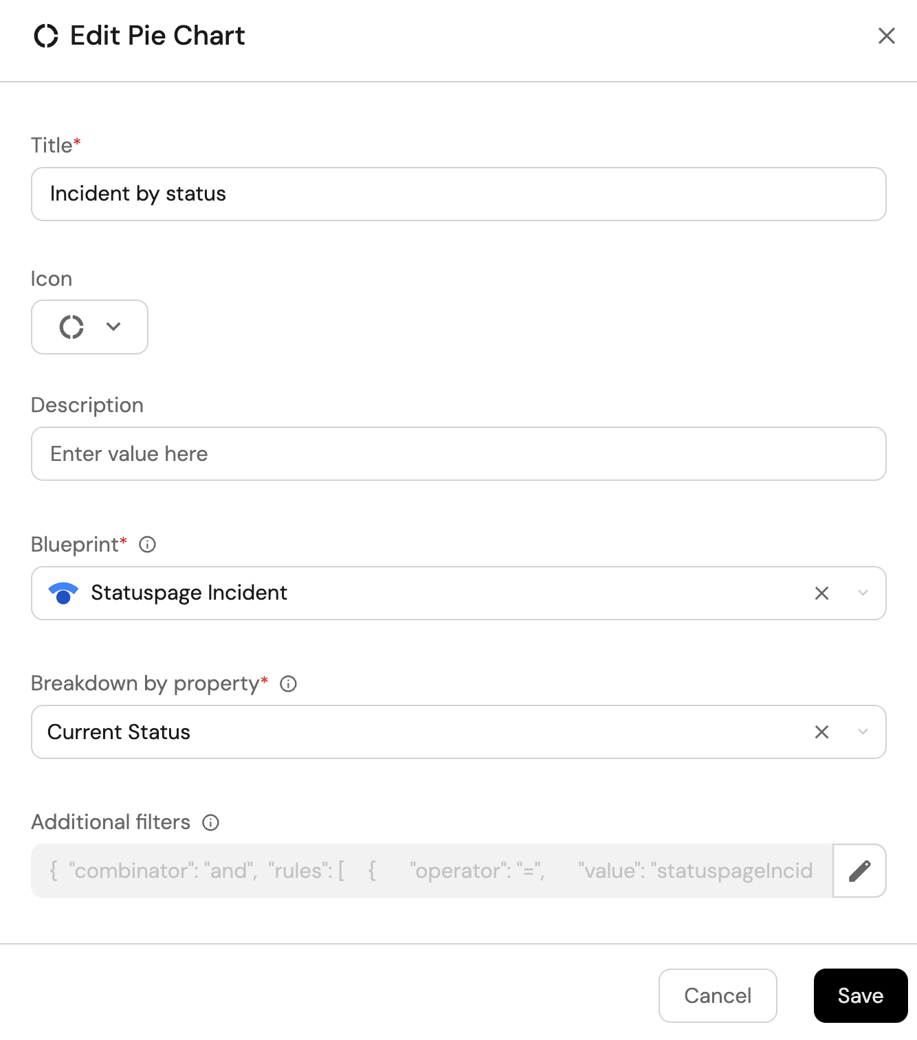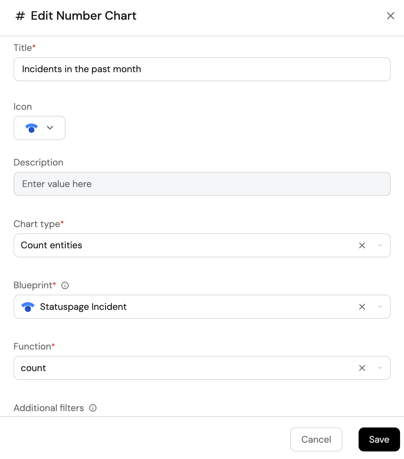 Count Entities (All Entities)Chart type and choose Statuspage Incident as the Blueprint. -