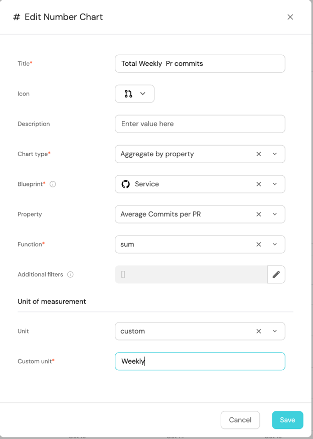 customas the Unit and inputPull Request merged per monthas the Custom unit.